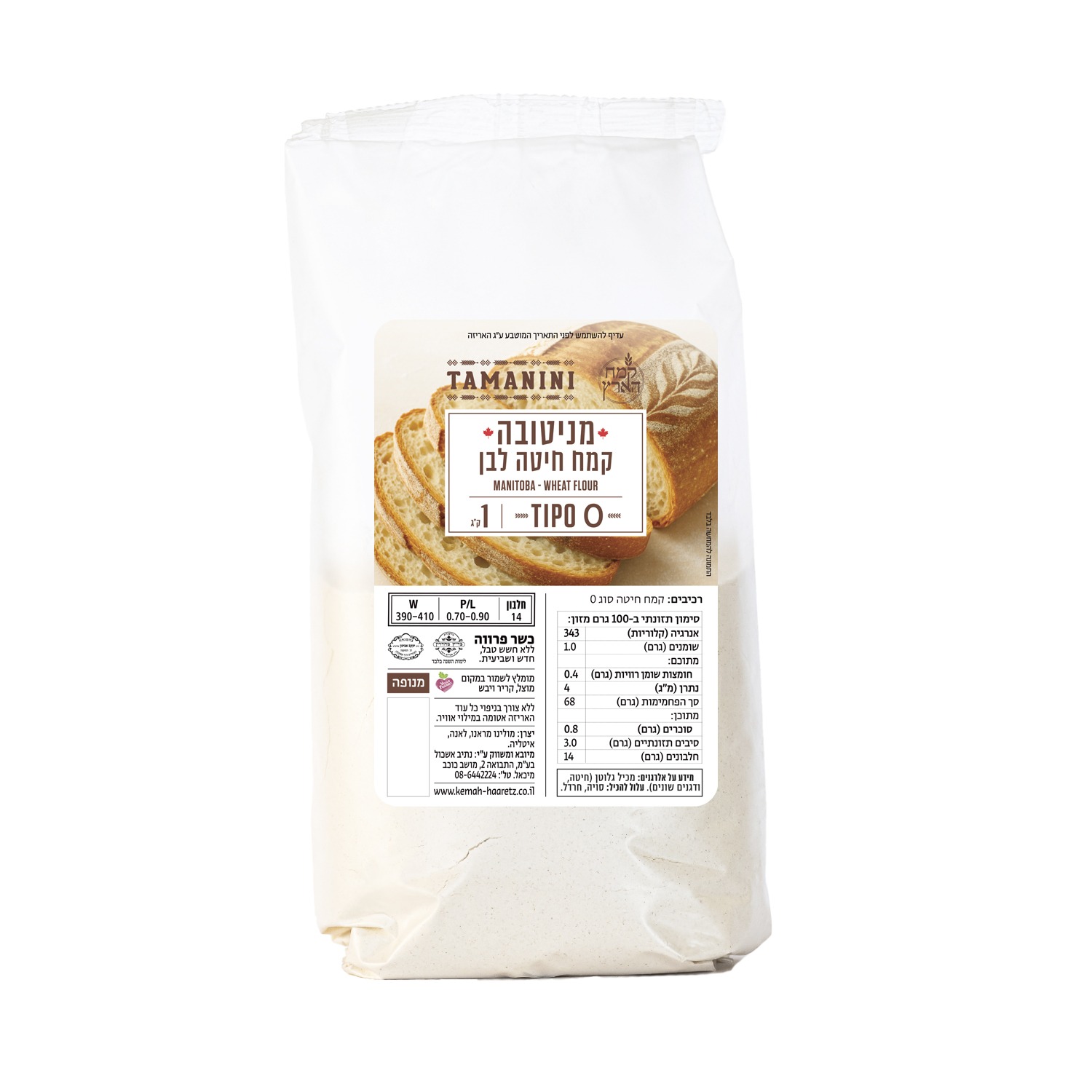 רכיבים: קמח חיטה סוג 0 חלבון 14 | P/L 0.70-0.90 | W390-410