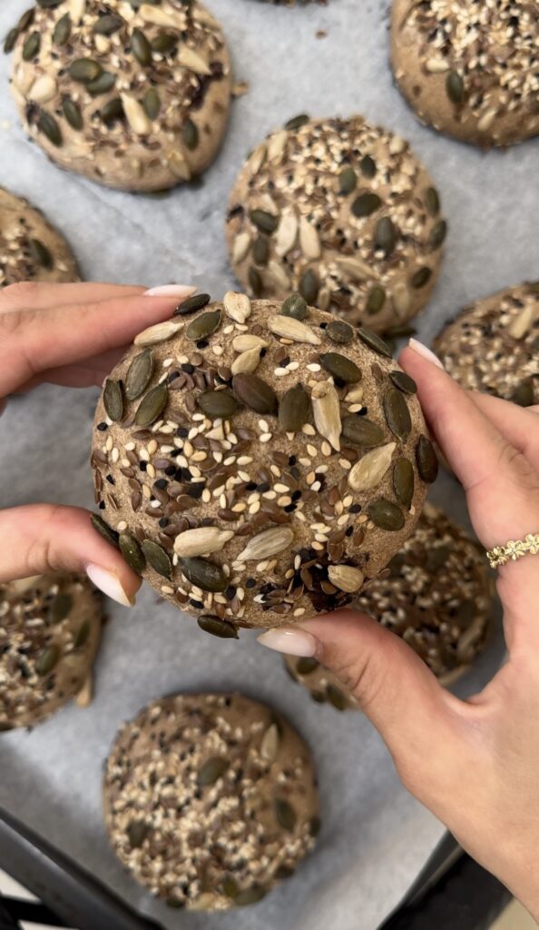 אופים בתנור שחומם מראש ל-190 מעלות במשך 25-30 דקות, או עד שהלחמניות מוכנות.